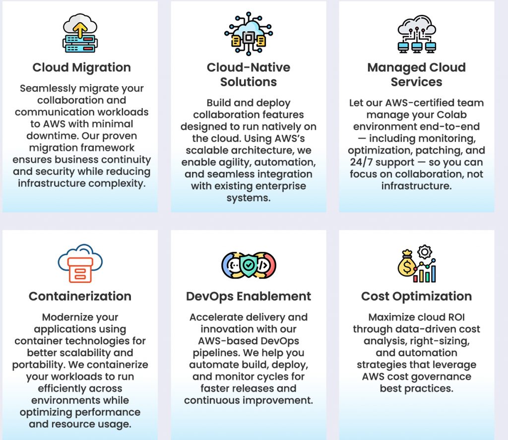 As an official member of the AWS Partner Network (APN), Nexaei Colab collaborates closely with AWS to build, migrate, and manage modern collaboration ecosystems in the cloud.